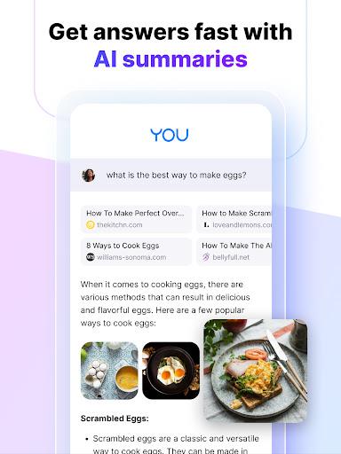 Con la búsqueda conversacional de You.com, impulsada por IA de vanguardia, obtendrá respuestas inmediatas a sus preguntas e incluso recibirá sugerencias para profundizar en el tema. ¿Necesita capacidades avanzadas de IA? You.com lo cubre con funciones como generación de texto, resumen de contenido, creación de imágenes, desarrollo de código y más. Es perfecto para una investigación exhaustiva, ya que proporciona citas detalladas para que pueda confiar en la precisión de las respuestas. Elija entre la búsqueda tradicional o la búsqueda mejorada con IA y administre fácilmente todas sus búsquedas, chats e historial de navegación.