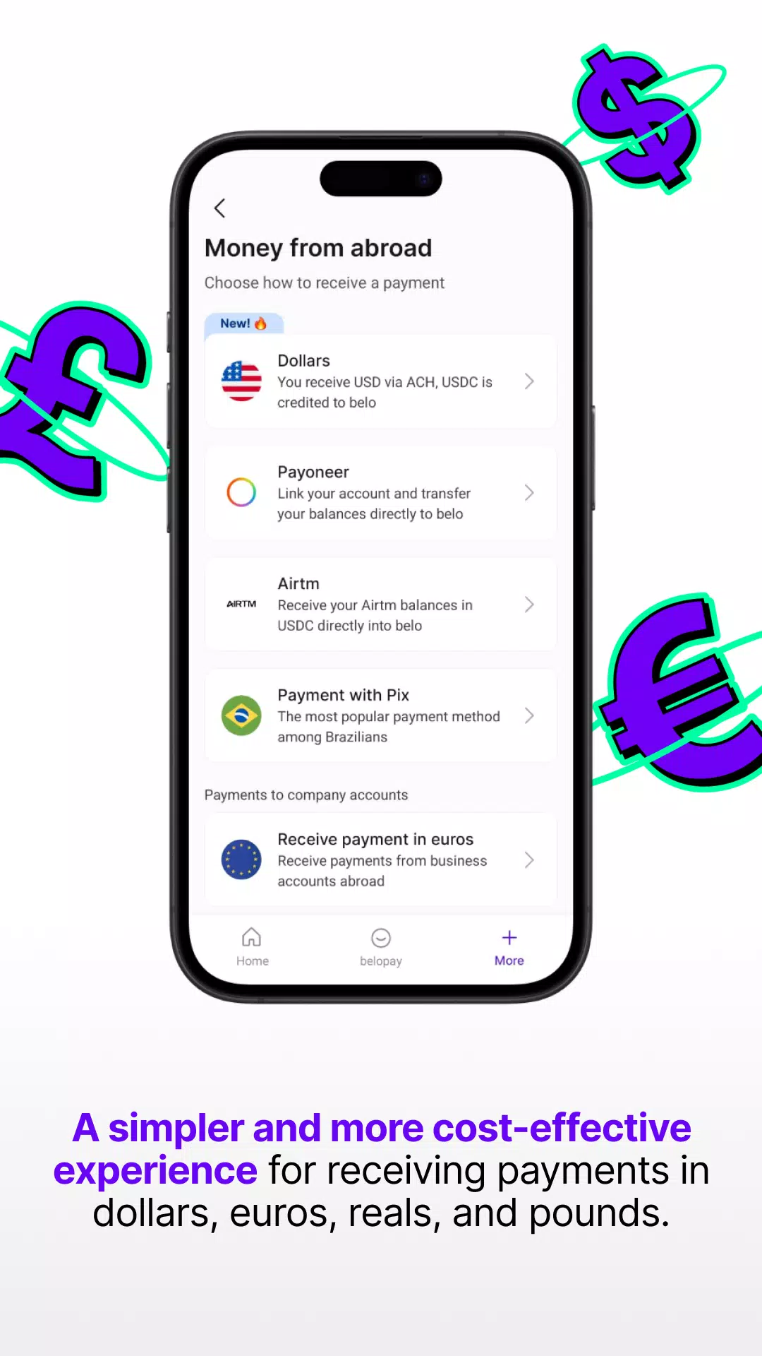 Avec Belo, vous pouvez accéder sans effort à vos fonds sur PayOneer, vous offrant une méthode rapide et pratique pour recevoir des paiements pour votre travail en dollars et en euros. Belo est une question de votre argent, vous offrant la liberté de fonctionner sans limites ou frontières.