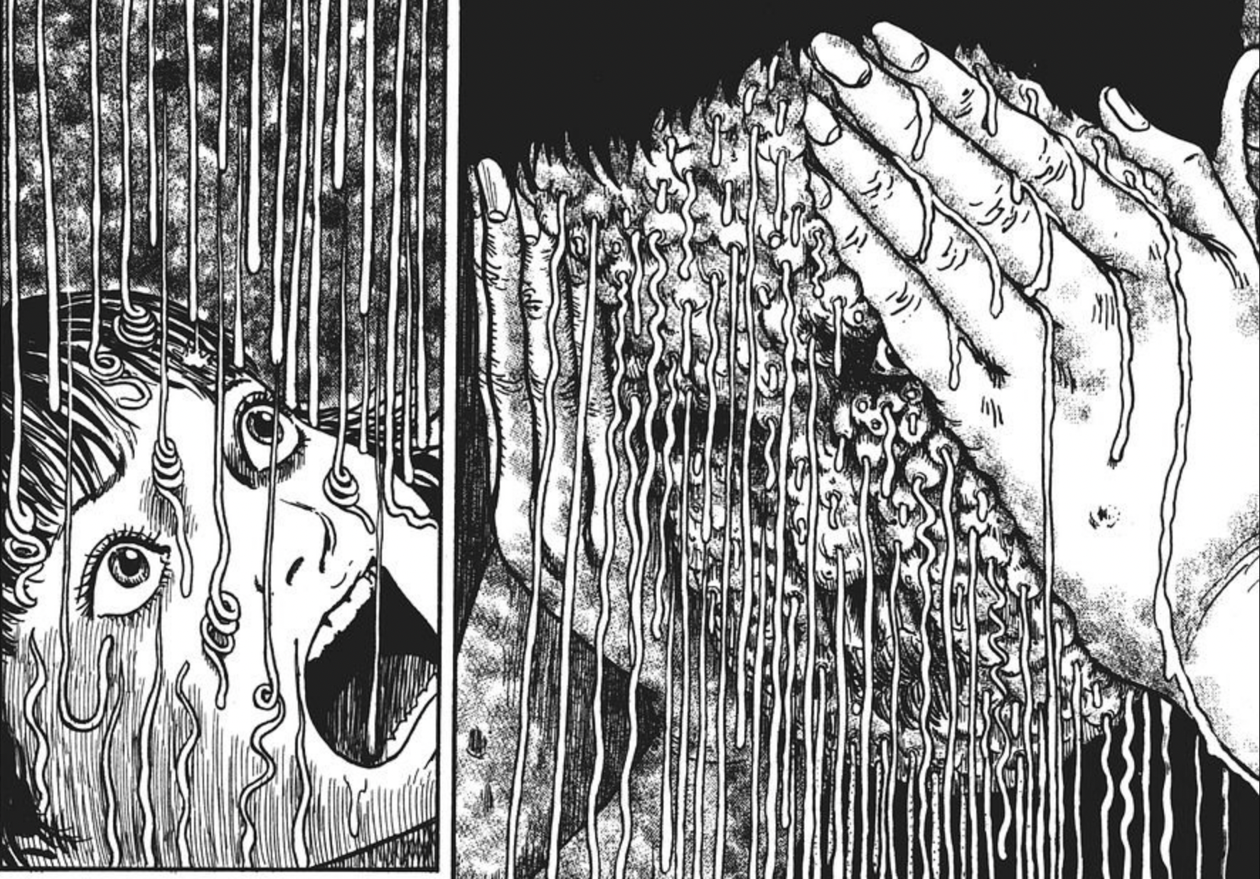 Probablement la plus célèbre des œuvres d'Ito, Uzumaki a gagné son statut de classique. Têsant une malédiction surnaturelle dans une histoire de fantômes centrée autour de la petite ville de Kurouzu-Cho, hantée non pas par les esprits mais par des spirales, cette histoire est uniquement effrayante. La ligne distinctive d'ITO transforme les formes généralement modestes en quelque chose de tout à fait terrifiant. Uzumaki explore les thèmes de l'obsession, de la paranoïa et du banal devenant bizarre. Son impact est indéniable, avec plusieurs adaptations de jeux vidéo et cinématographiques et une adaptation d'anime très attendue en développement. Vous pouvez consulter notre critique du premier épisode de l'anime Uzumaki pour voir ce que nous pensions.