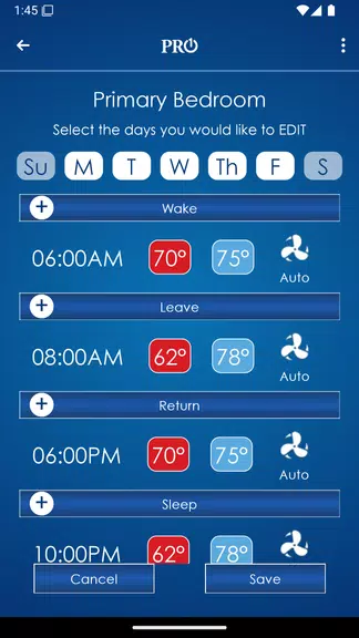 > Personnaliser les horaires: tirez parti de la planification intuitive de l'application pour adapter les paramètres de température pour différentes périodes de la journée et des jours de la semaine. Cette personnalisation permet d'économiser de l'énergie et de l'argent tout en maintenant un environnement familial confortable.