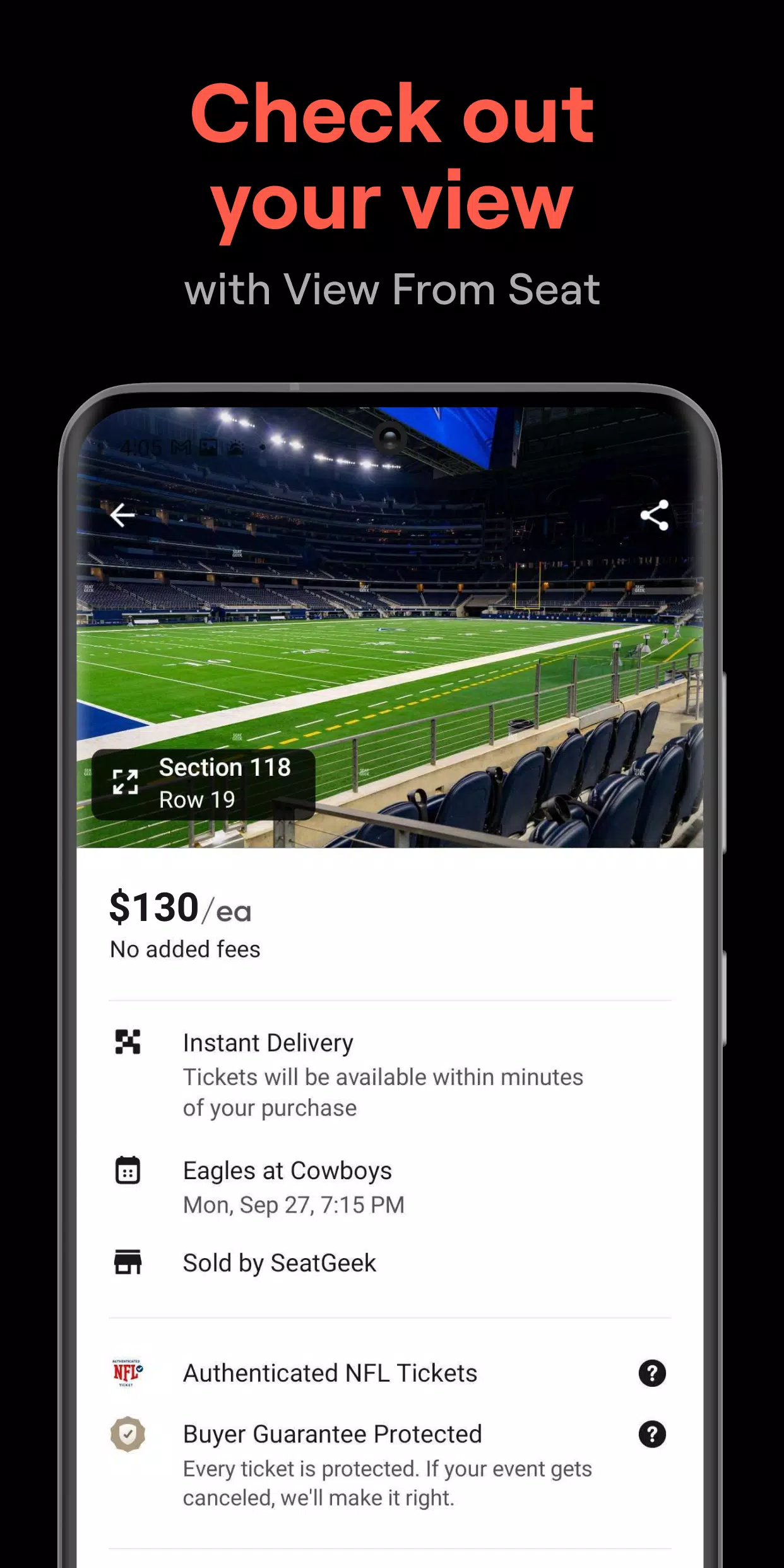 Oubliez l'impression de billets; Avec SeatGeek, vous pouvez simplement montrer votre ticket électronique dans l'application pour accéder aux lieux, ce qui rend l'entrée rapide et pratique.