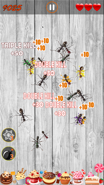 ⭐ ボーナスポイント: プレイヤーは、画面を 1 回タップするだけで複数のアリを倒すことでボーナス ポイントを獲得できます。ワンタップでより多くのアリを排除できるほど、スコアが高くなります。これにより、ゲームの興奮と競争力がさらに高まります。