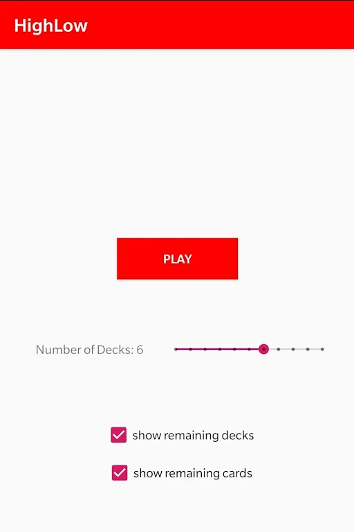 Highlow -Blackjackは、ブラックジャックのスキルとマスターカードカウントを進めることを目指している人にとって不可欠なツールです。直感的なインターフェース、リアルなゲームプレイ、およびスピードと精度のトレーニングに重点を置くこのアプリは、カードカウントの習熟度を練習および強化するための魅力的なプラットフォームを提供します。今すぐアプリをダウンロードして、ブラックジャックゲームを次のレベルに引き上げてください!