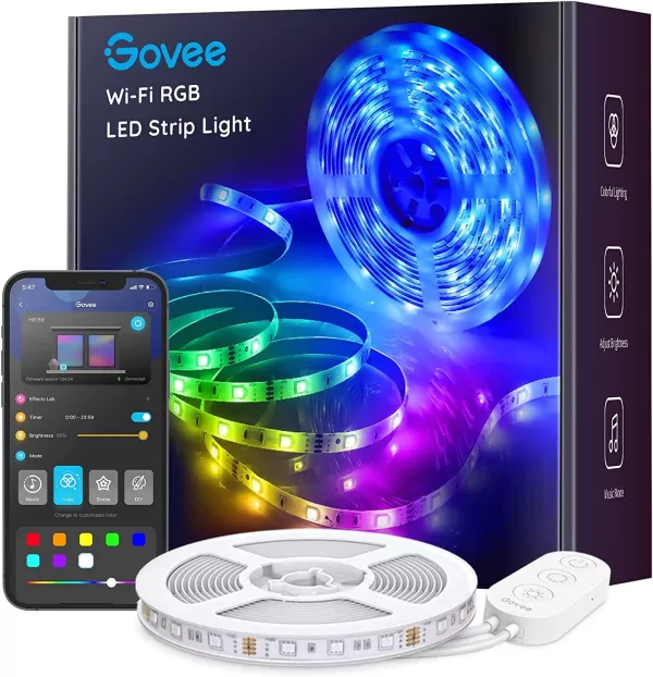 100フィートのライトを使用すると、目的の長さに合わせてフィットをカスタマイズできます。コントロールは汎用性が高く、含まれているコントローラー、音声コマンド、またはGoveeアプリを介して利用でき、スケジュールを設定したり、色をカスタマイズしたりすることができます。