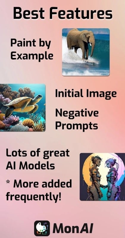 monAI MOD APK is a convenient and swift tool for creating art with the assistance of artificial intelligence. It offers high-quality paintings at no charge, along with easy editing, customization, and error correction capabilities. The app also fuels your creativity by providing inspiration and fresh ideas, making the art-making process seamless and enjoyable. Join monAI MOD APK to unleash your creativity and bring your ideas to life in just a few seconds. Click to download and start crafting amazing artworks today! What's New