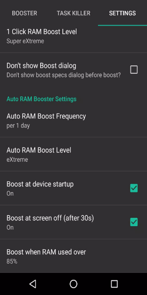 Threshold-Based Boosting (Pro Feature): Configure the app to automatically boost RAM when usage surpasses a specified threshold (55%, 65%, 75%, 85%, or 95%).