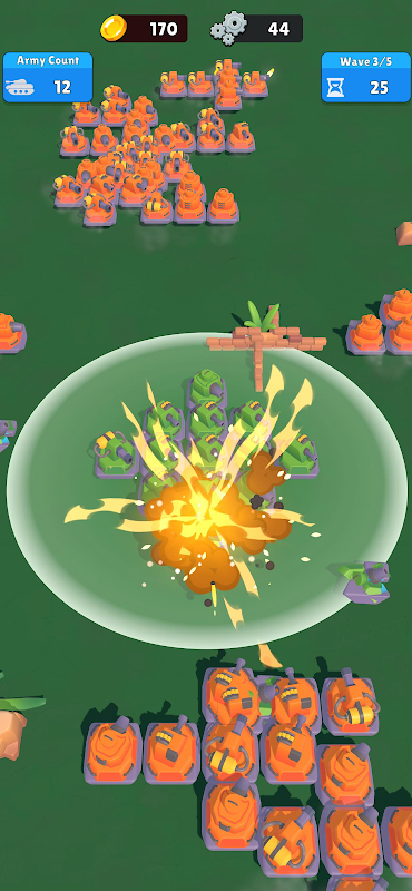 Command your tank army and conquer waves of enemies in this strategic tank battle game! Prepare for war in Tank Wars, the ultimate tank strategy game. Begin with a single tank and build an unstoppable fleet by defeating, repairing, and recruiting enemy tanks. Expand your fleet, create powerful formations, unlock and upgrade skills, and engage in fast-paced battles where strategy and positioning are paramount. Face increasingly challenging waves of enemies – how far can you advance?