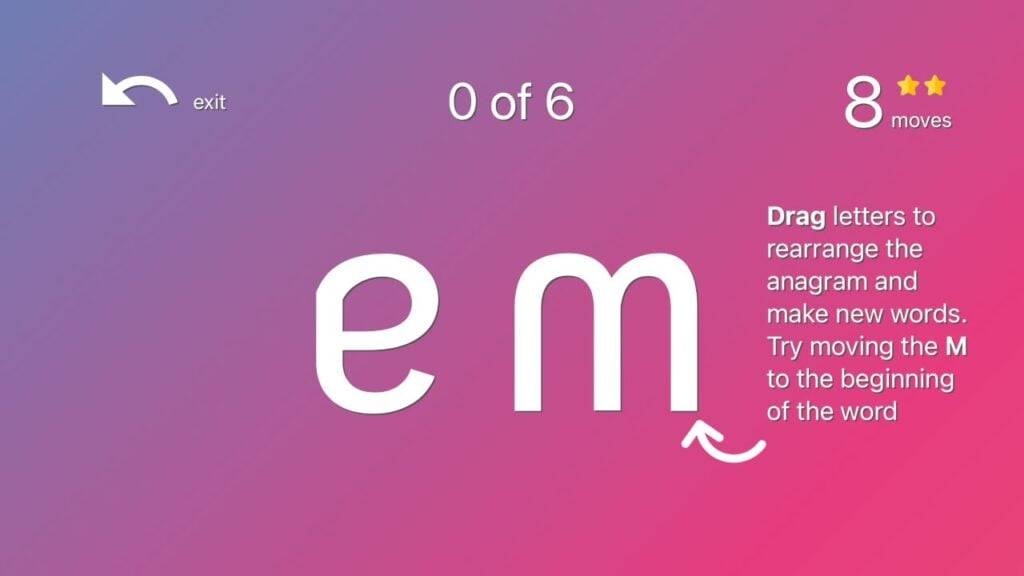 一個看似簡單的遊戲,您可以在其中安排文本塊形成單詞。它優雅的設計和具有挑戰性的配置使其成為有意義的體驗。