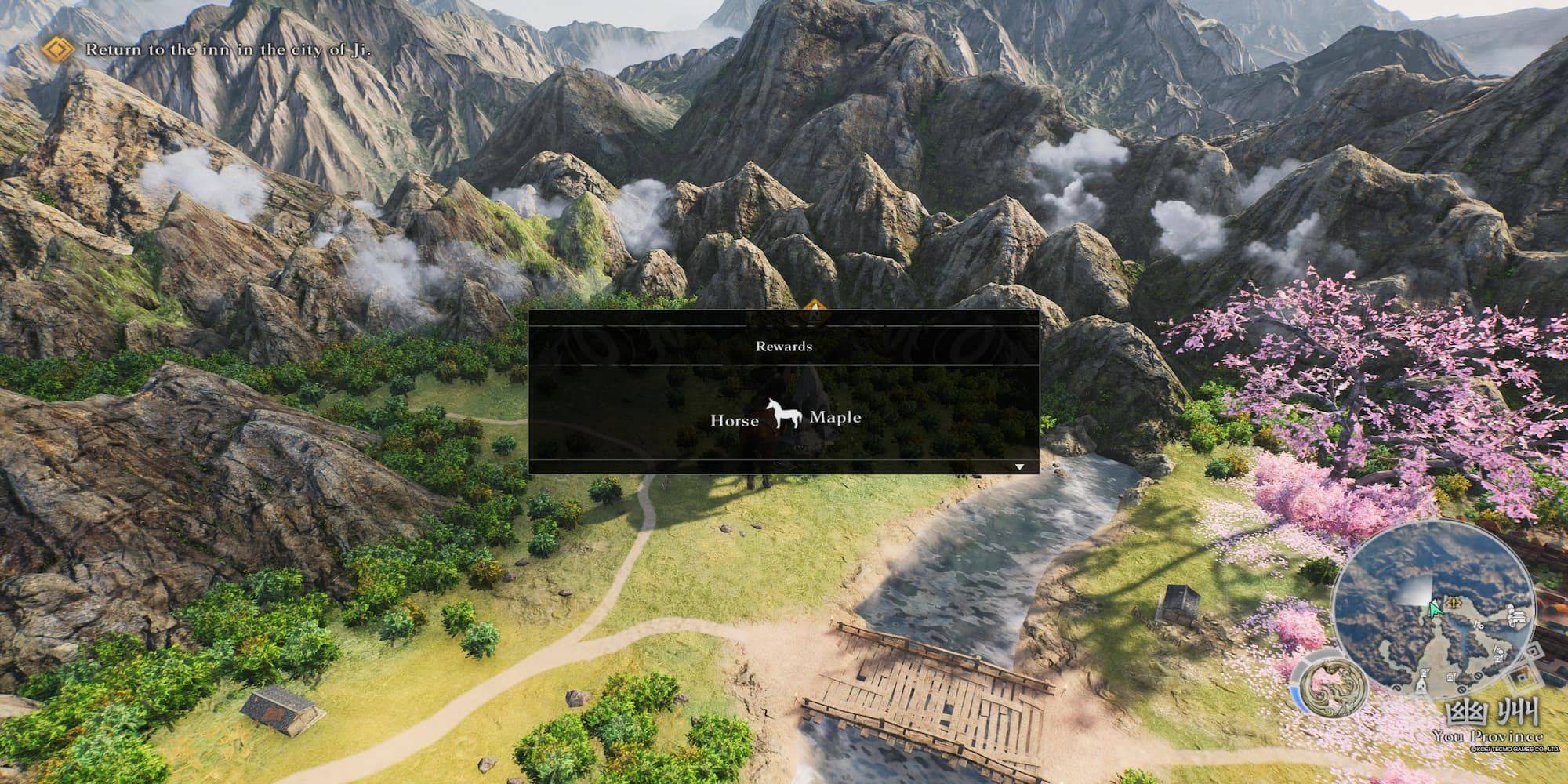 解鎖第一匹馬很簡單,無需支付。在第1章中,完成“ Zheng Fei的測試”戰鬥之後,商人將出現在Overworld中。在到達營地之前,當您從Wan城堡向東北行駛到廣方戰役時,您會遇到他。接近站在他的馬旁邊的商人,他會給您帶來您的第一個坐騎,這將自動裝備。