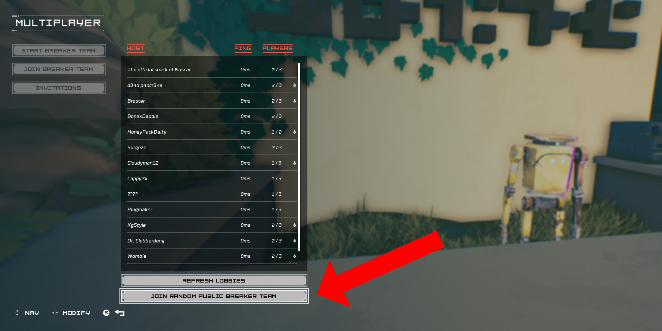 如果您缺少朋友玩Hyper Lighterber,則可以加入公共團體。在被詛咒的Outpost的多人遊戲菜單中,選擇“加入Breaker Team”,然後向下滾動並選擇“加入隨機公共斷路器團隊”。