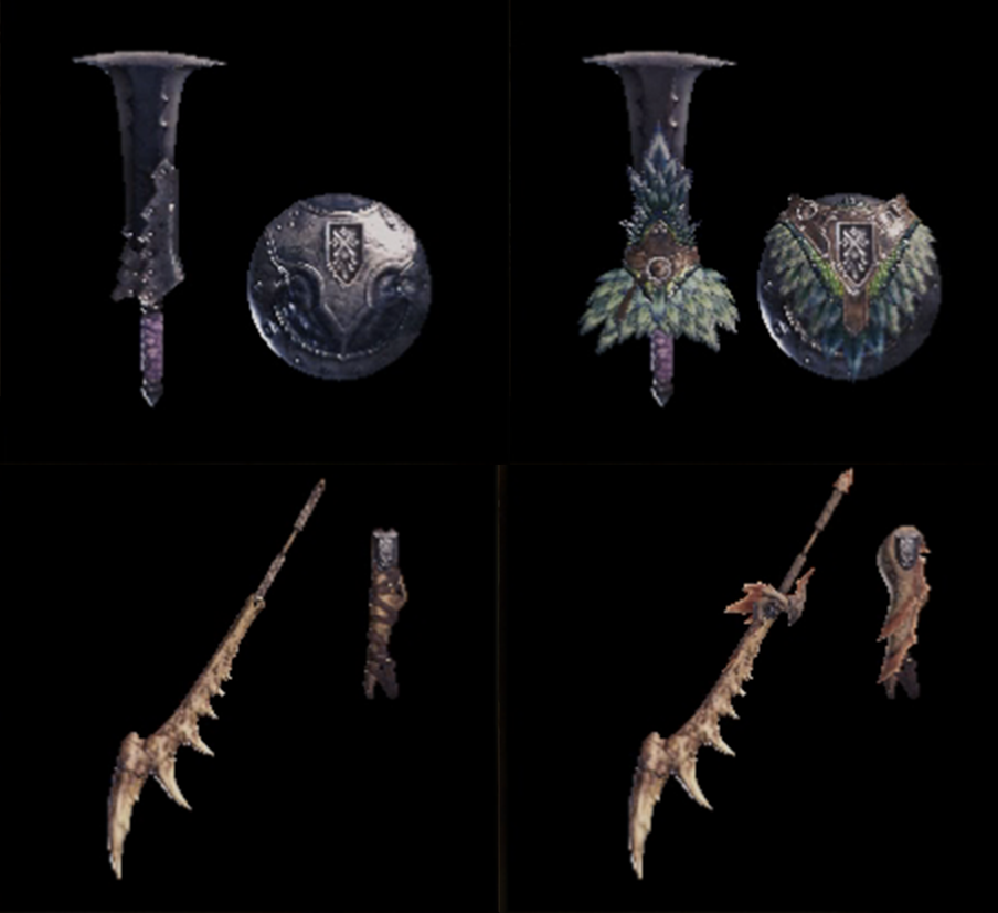這直接解決了對武器相似性的擔憂。與 *World *不同的是,許多武器,即使在其最高升級水平上也具有類似的美學(如下所示,比較了Aqua和Pukei-Pukei Sword&Shield和Pupei-Pukei Sword&Shield,以及The Bone和Jyuratodus Long Swords), *Rise *擁有完全獨特的武器設計。
