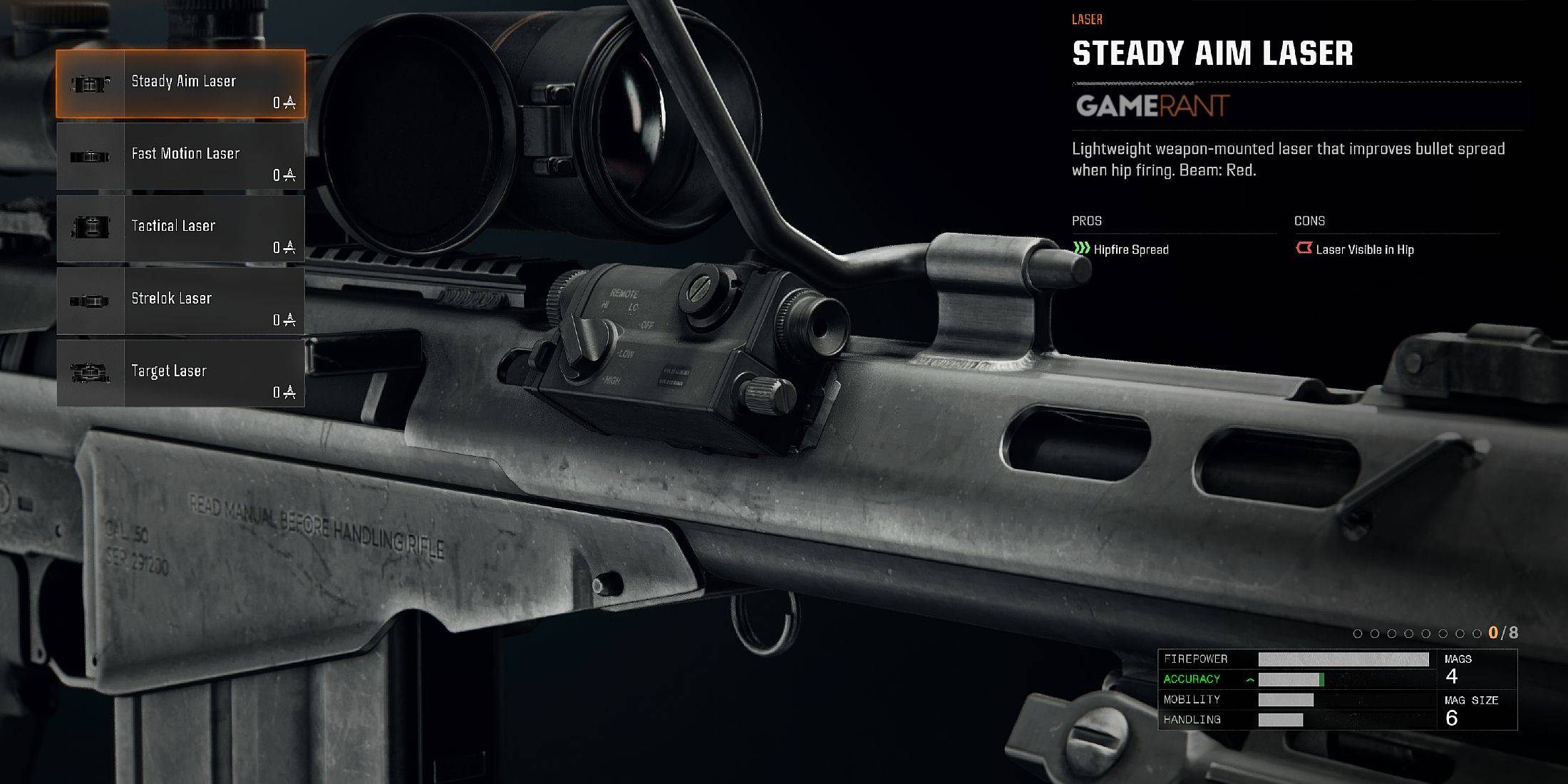 AMR MOD 4狙擊步槍提供了各種各樣的定制選項,使玩家可以將狙擊手的負載量身定制為完美。大多數附件通過將武器升至39來解鎖,而某些光學元件與其他武器的進展相關。這是AMR mod 4的所有可用附件: