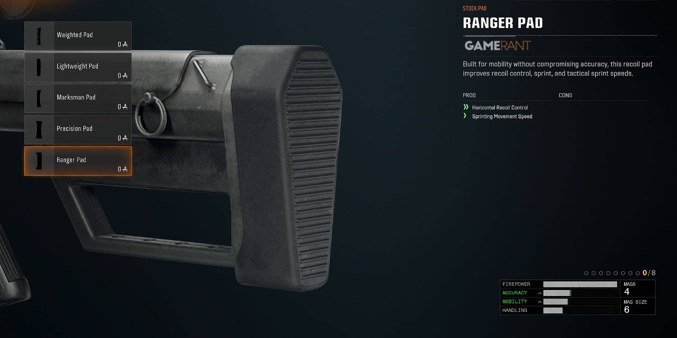| 遊騎兵墊 | 改進的水平後坐力控制 提高衝刺速度 | - |