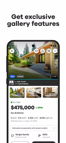 現在,使用Realtor.com房地產和租金應用程序,搜索您夢想中的房屋比以往任何時候都更加無縫。無論您是在市場上購買,出租還是出售,該備受讚譽的應用程序都可以為您提供滿足您的購置目標所需的所有工具和資源。借助可自定義的搜索過濾器和具有鄰里見解的交互式地圖,找到理想的房屋非常簡單。深入了解具有獨家畫廊功能,3D虛擬遊覽和視頻演練的清單。與他人合作,在新列表上獲得實時警報,並使用可負擔性和抵押貸款計算器等工具有效地管理預算。發現一個完美適合您需求的房屋。