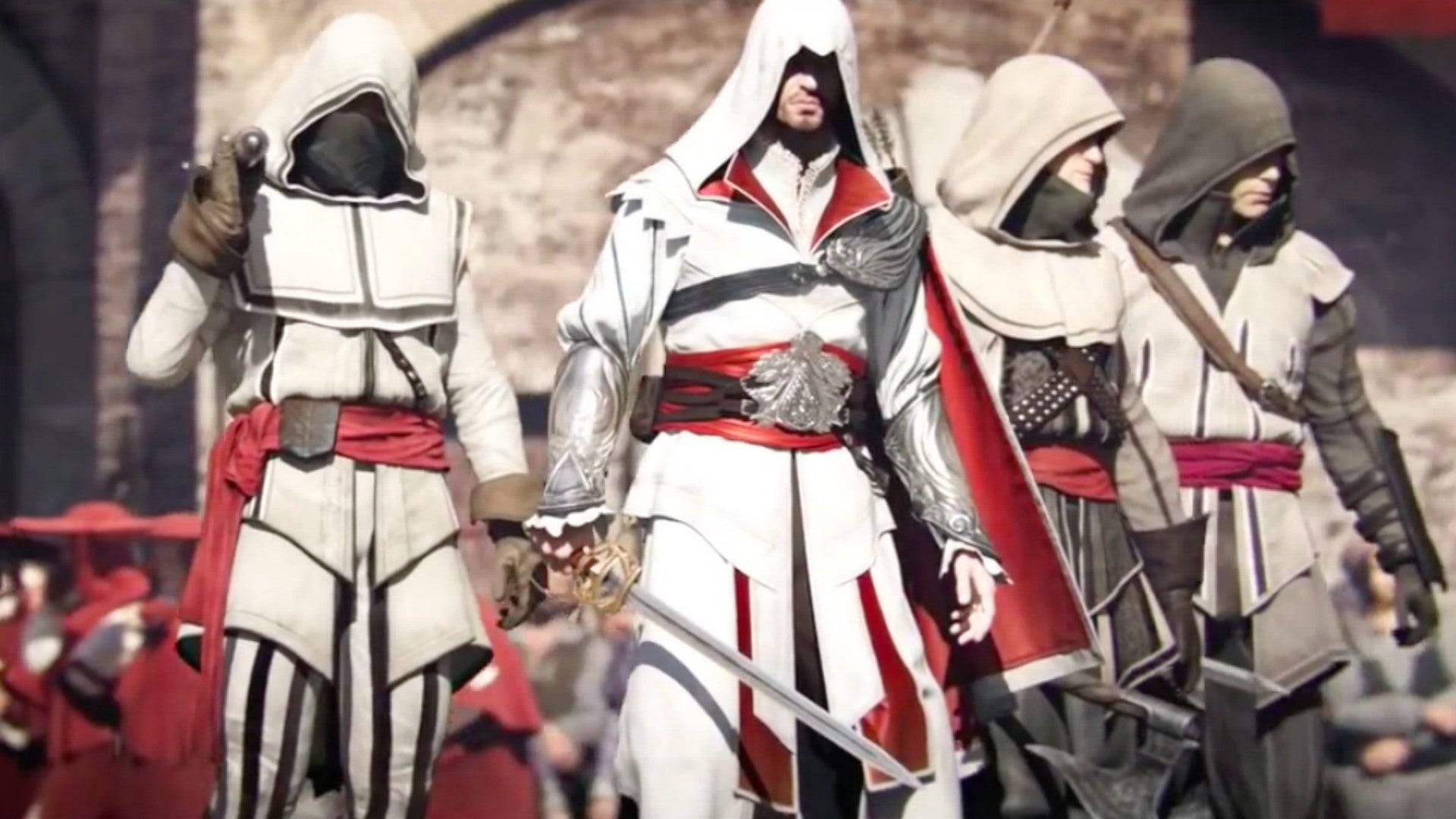 在刺客的信条:兄弟会中,埃齐奥的故事持续了,他试图重建弱化的刺客行会,并取回伊甸园的苹果。现代情节跟随戴斯蒙德(Desmond)和刺客到意大利,以寻找相同的人工制品,这对于避免预言灾难至关重要。